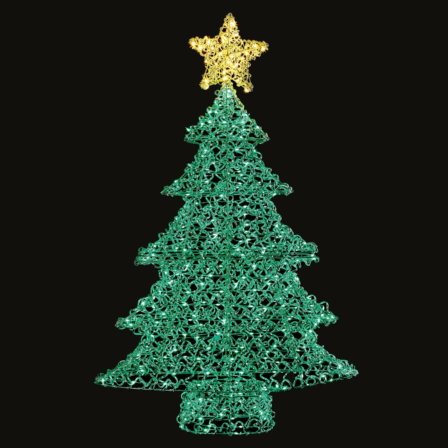 Bring a brilliant, festive glow to your home or garden this Christmas with this stunning 1.25m Indoor Outdoor Light Up LED Christmas Tree Decoration. Standing at an impressive 1.25 metres tall, this dazzling tree features an intricate, woven design finished in a vibrant emerald green. Integrated with countless bright, energy efficient LED lights, it casts a beautiful, sparkling illumination that is sure to capture the attention of all your guests. Crowning the tree is a magnificent, warm white star topper, adding that perfect traditional touch of festive cheer. Designed for maximum versatility, this durable decoration is suitable for use both indoors or outdoors to create a welcoming, illuminated display.