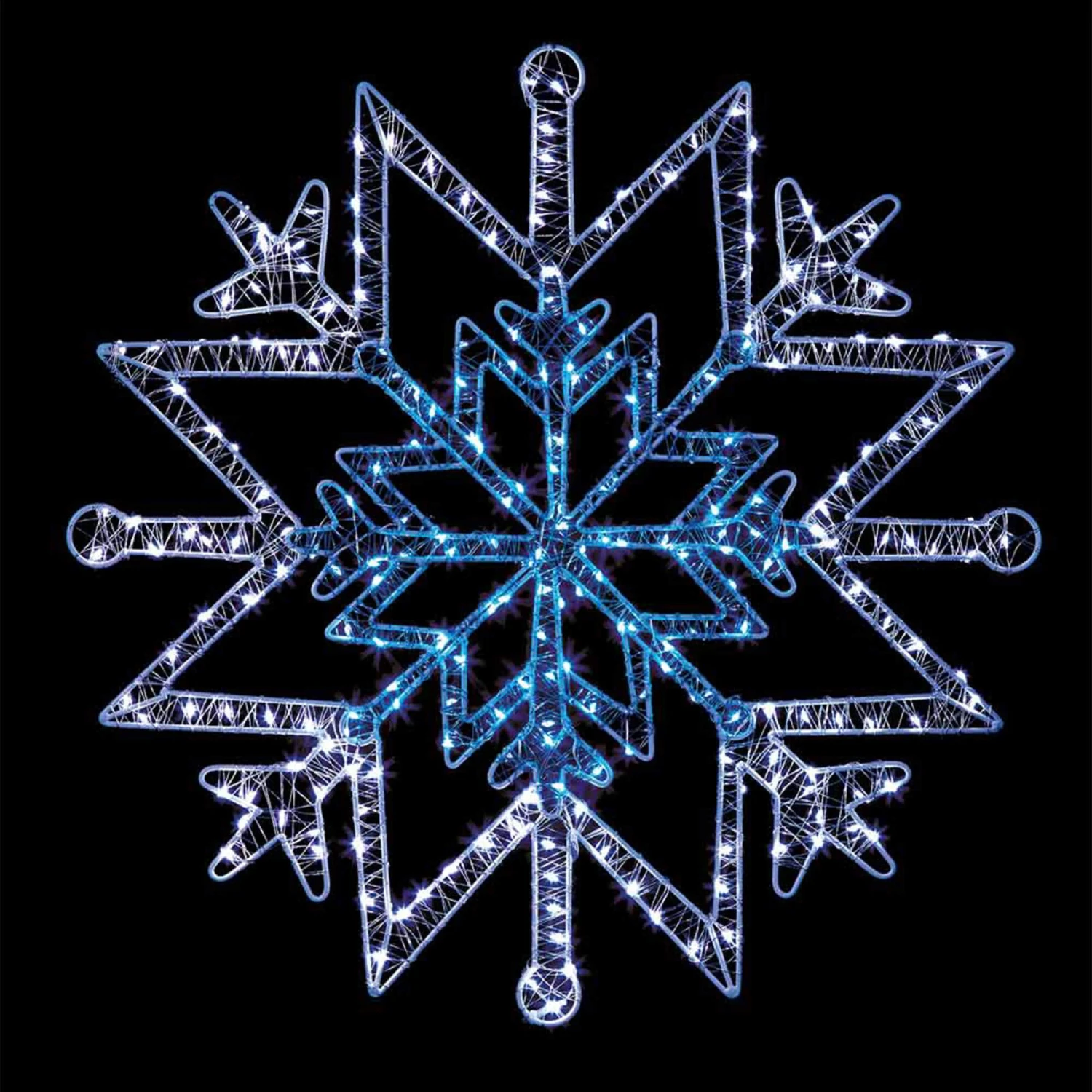 Create a magical winter wonderland with this stunning MicroBright Snowflake LED Decoration. With a 50cm diameter, this statement piece features a striking snowflake design brought to life with cool white and ice blue LED lights. Hang this snowflake to start spreading that magical Christmas feeling.