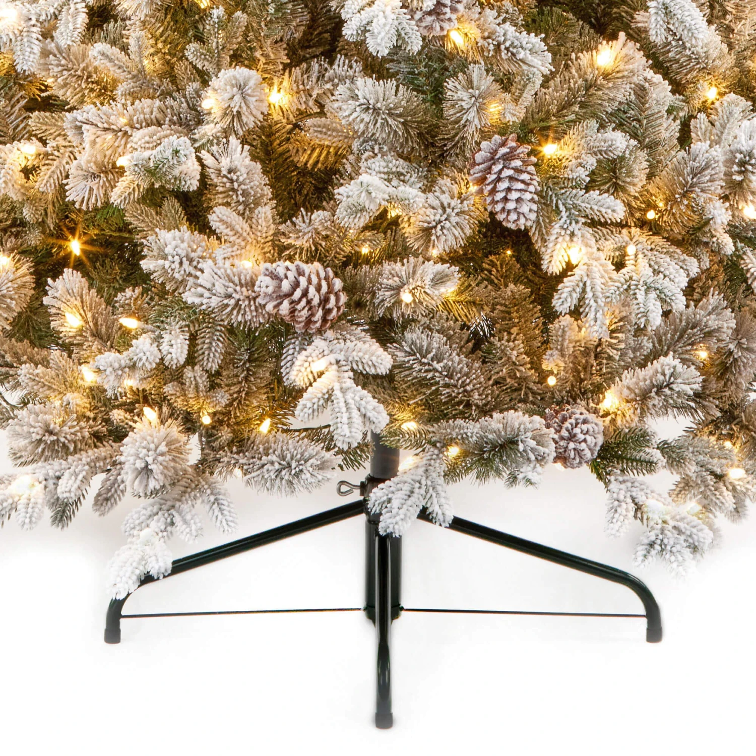 This 6.5ft Snowy Dorchester Pine Christmas Tree is as realistic as you can get without having an actual tree in your home. With its frosted tips, the tree looks like it has been covered in a thin layer of snow adding to that magical feel. The tree also includes pinecones in it just as a real pine tree would, adding to that realistic look.