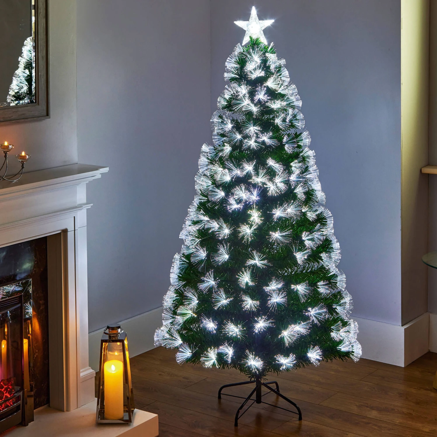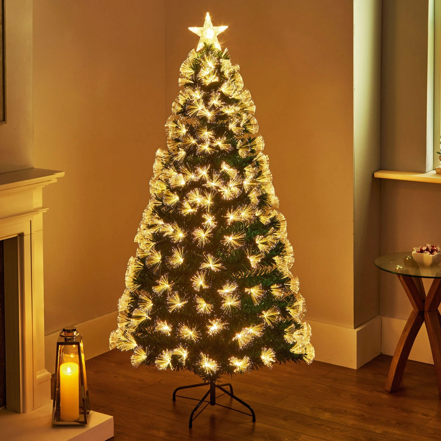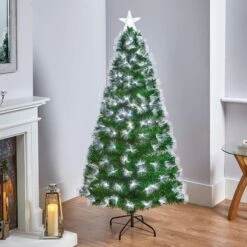This glamorous 6ft Fibre Optic Christmas tree will look amazing in every room. Being able to change between warm white and bright white, you won’t get bored of your tree always being the same colour. With this tree you will always be able to see the light from every angle and it will be evenly spread. The tree also has a light up star on the top which can match the colour you set the tree to.