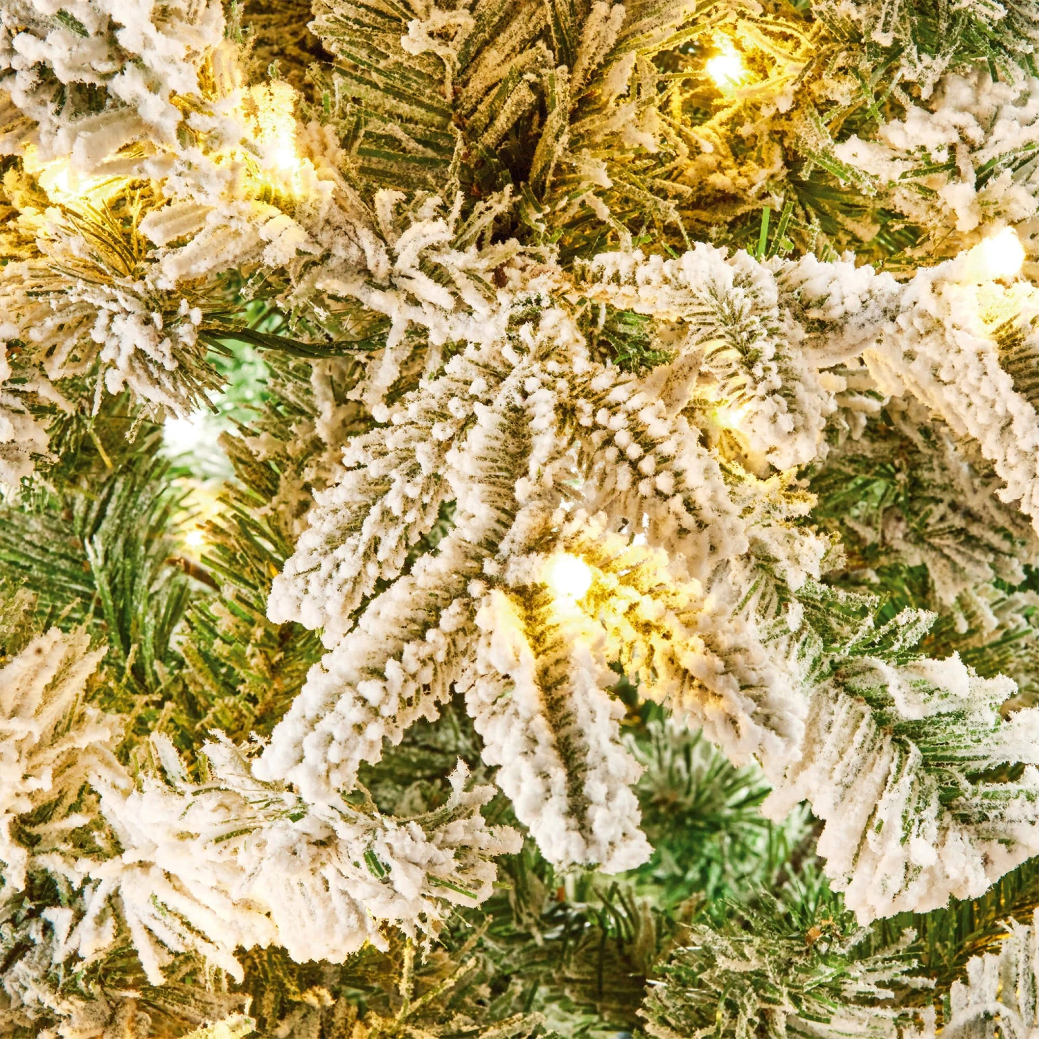 This stunning 6-foot-tall tree boasts a remarkably realistic appearance, featuring an artificial dusting of snow that creates a beautiful, snow-covered effect. Its lifelike foliage is crafted from a high-quality mix of PE and PVC materials that creates a realistic feeling of tips of a real tree. With 569 tips and 220 pre-installed, low-voltage LED, this tree provides a full-bodied look and an enchanting glow right out of the box.