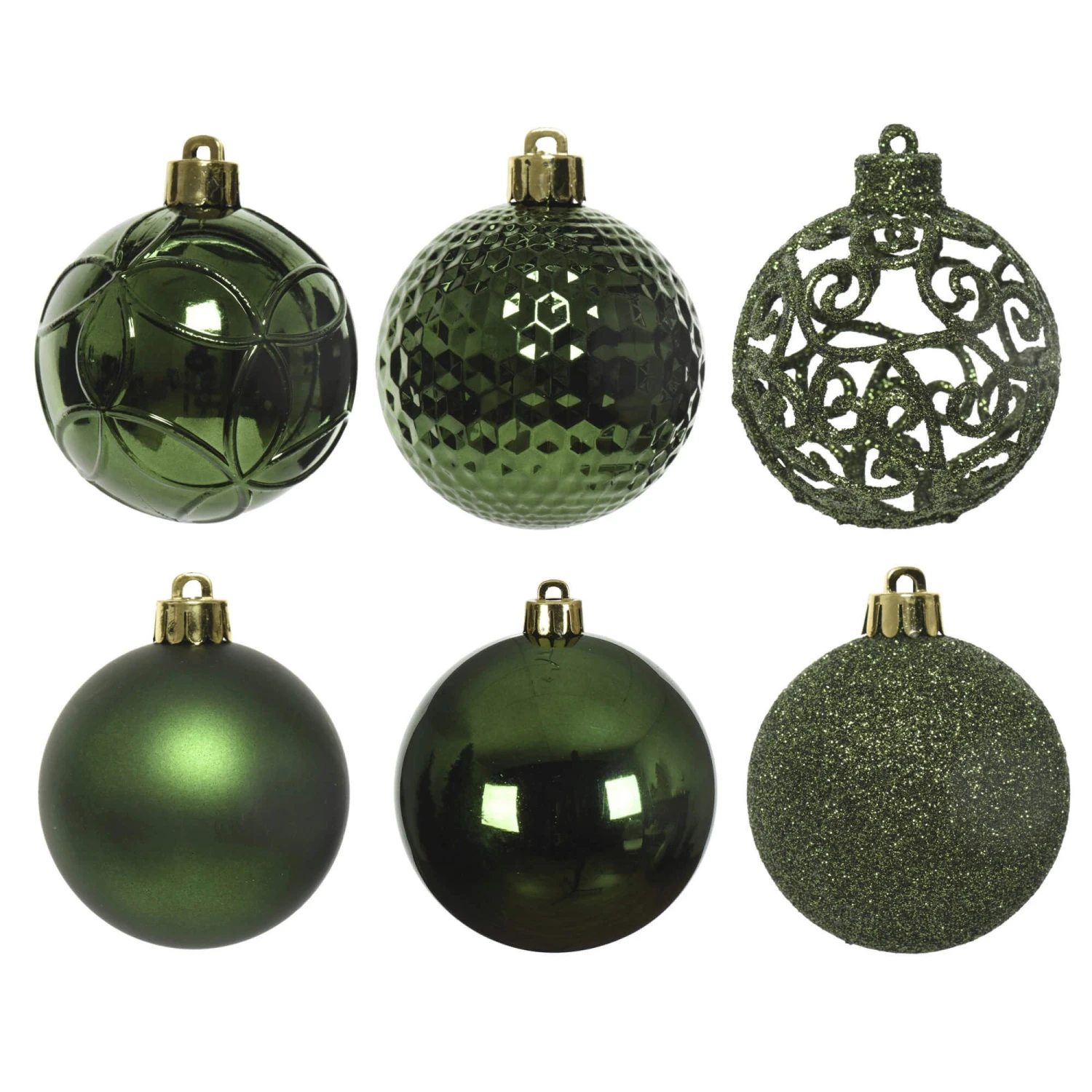 Dress your tree, wreath or garland luxuriously this Christmas with this set of 74 Pine Green Shatterproof Baubles with Assorted Finishes. Featuring a range of glittery and metallic finishes, this tube of decorations will provide you with practicality and style all in one this festive season.