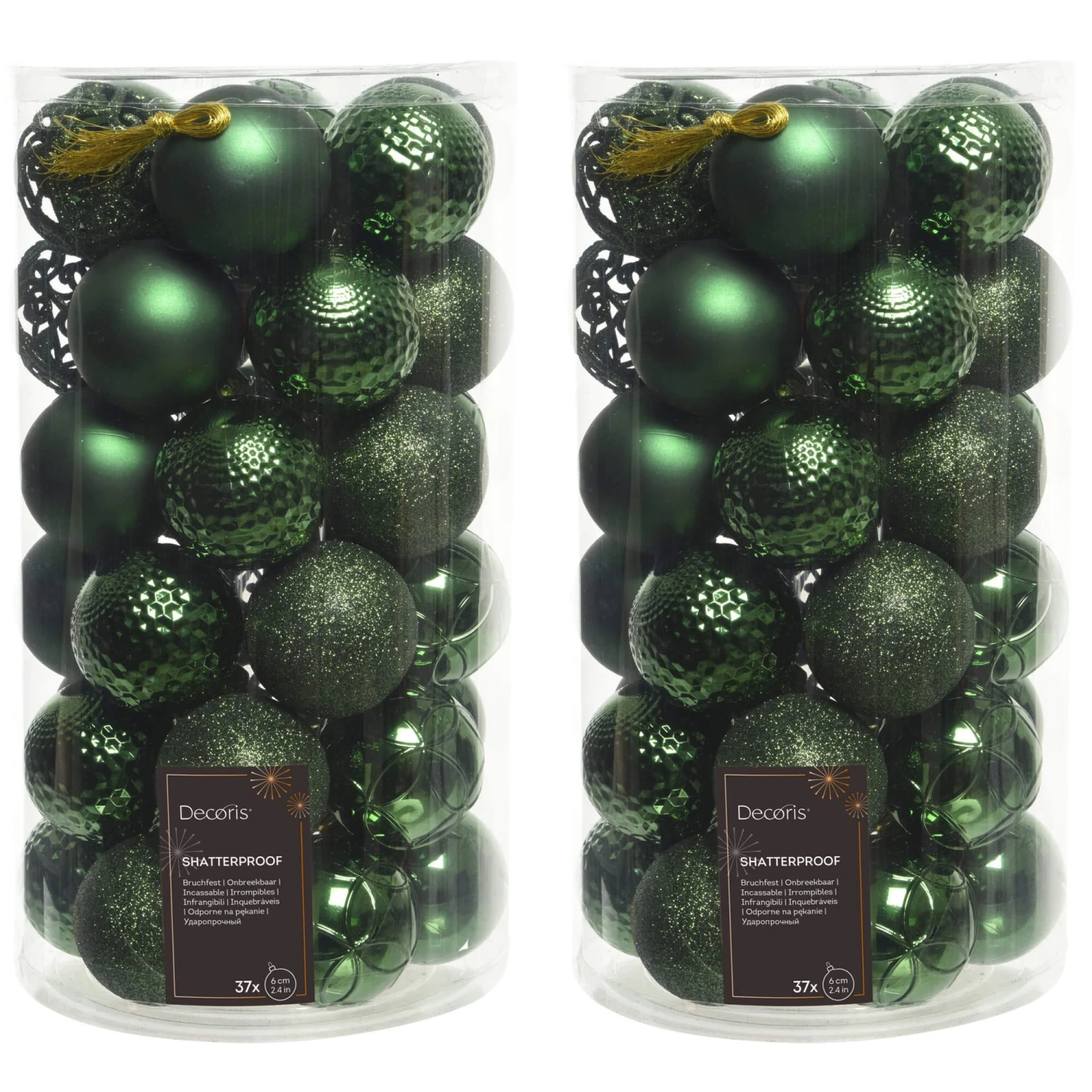 Dress your tree, wreath or garland luxuriously this Christmas with this tube of 37 Pine Green Shatterproof Baubles with Assorted Finishes. Featuring a range of glittery and metallic finishes, this tube of decorations will provide you with practicality and style all in one this festive season.