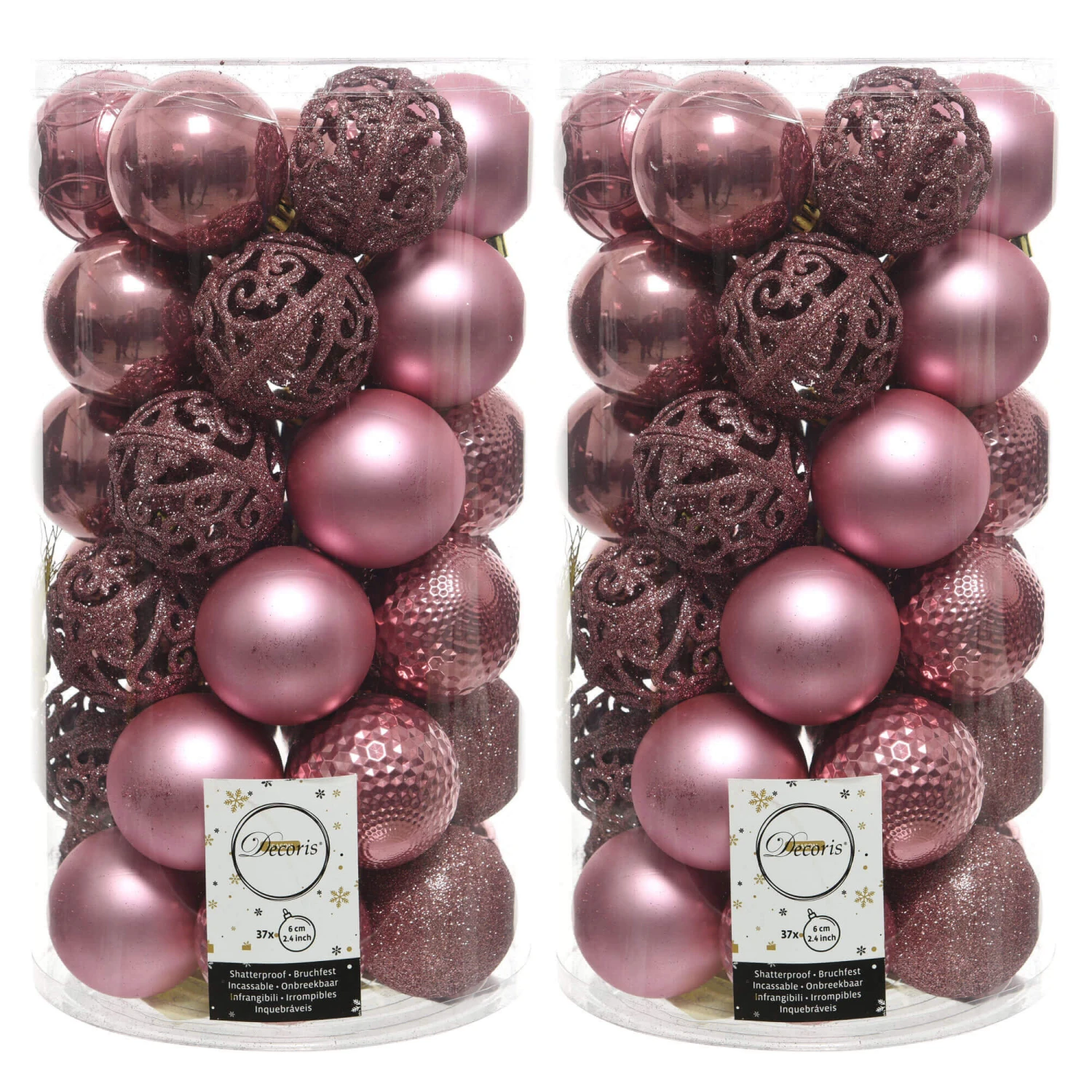 Dress your tree, wreath or garland luxuriously this Christmas with this set of 74 Velvet Pink Shatterproof Baubles with Assorted Finishes. Featuring a range of glittery and metallic finishes, this tube of decorations will provide you with practicality and style all in one this festive season.