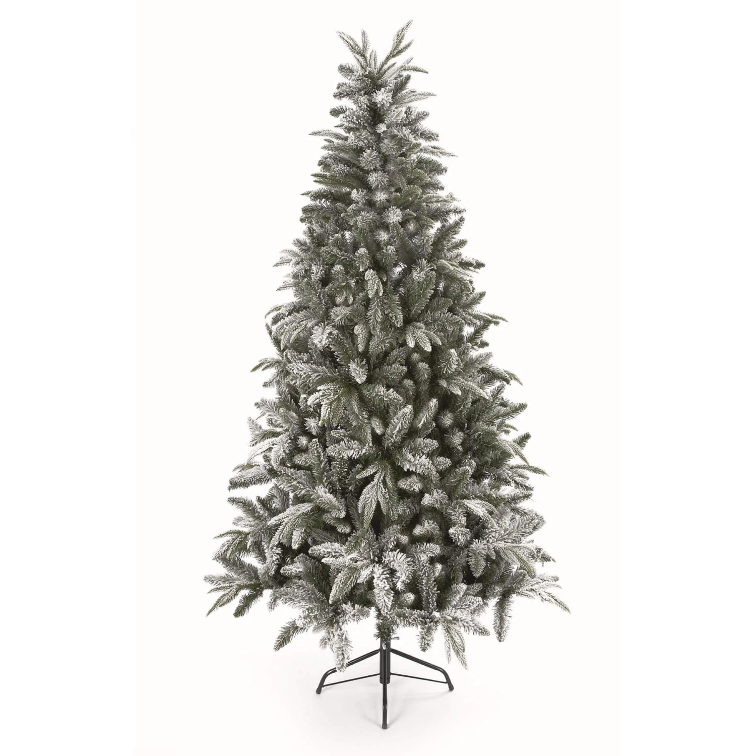 This stunning 8-foot-tall artificial Christmas tree boasts a generous 1912 tips on hinged branches, creating a remarkably full and realistic silhouette. The muted, dark green foliage is meticulously crafted, the the tree feels real thanks to the mixture of PE and PVC plastic, giving it a truly real authentic and natural appearance. A dusting of snow on the tips and an overall frosted and flocked appearance makes it a beautifully serene centrepiece for your Christmas decorations. This flocked spruce tree is durable and long-lasting. Its dense tips and realistic details add a bountiful and full-bodied appearance.