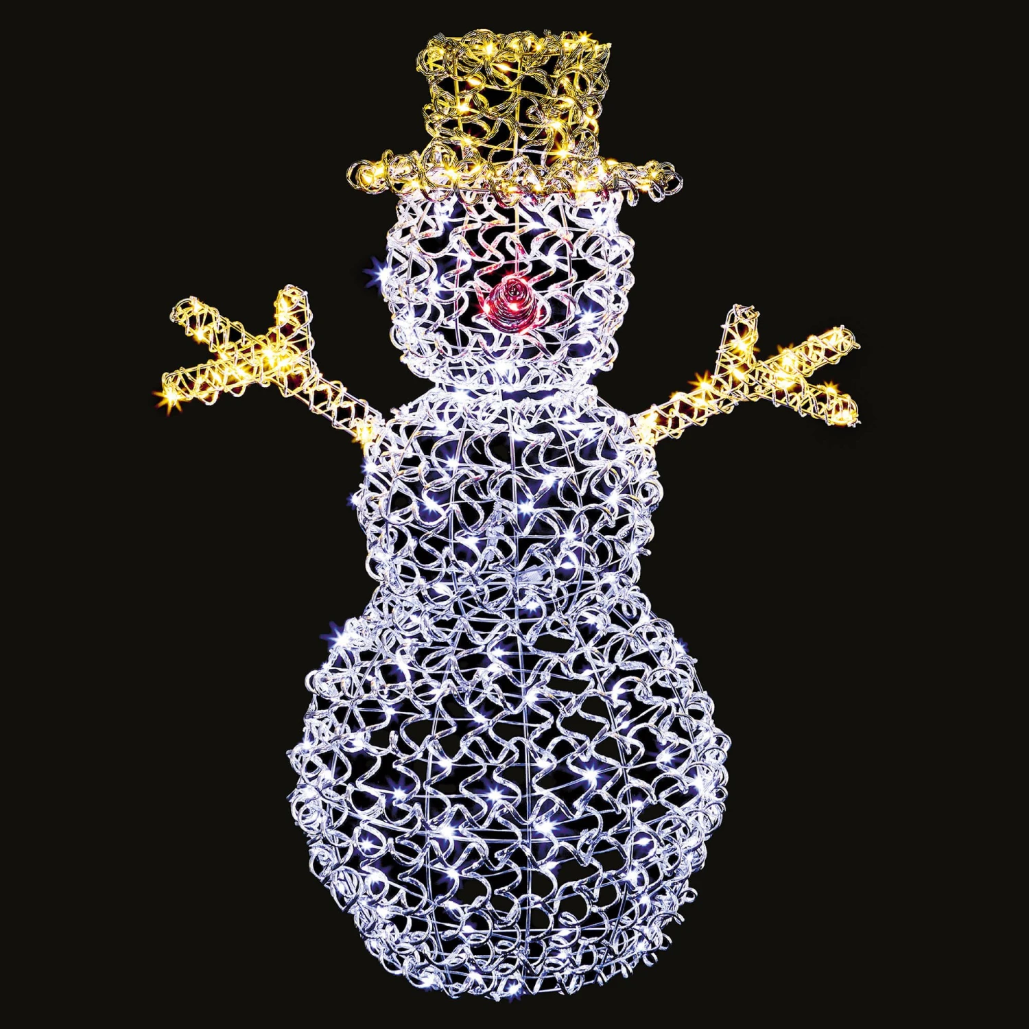Standing nearly a metre tall, this 97cm Indoor Outdoor Light Up LED Snowman features a bright, cool white woven design that perfectly captures the look of freshly fallen snow. He’s dressed to impress with a warm white illuminated top hat and arms, and a cheeky red nose that adds a fun pop of colour. Integrated with numerous energy efficient LED lights, this decoration provides a spectacular sparkle, instantly adding a touch of festive fun and warmth to any setting. Thanks to its durable construction, this snowman is suitable for both indoor and outdoor use. Place him in your hallway to greet visitors, or outside on your patio or lawn to create a delightful seasonal scene.