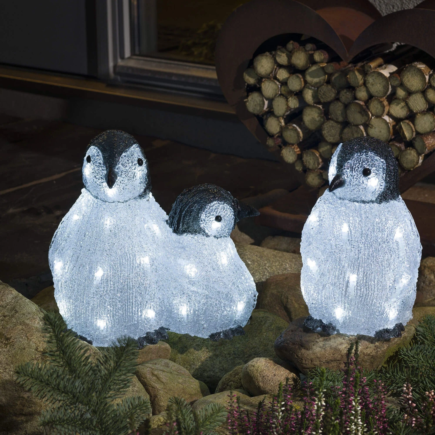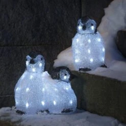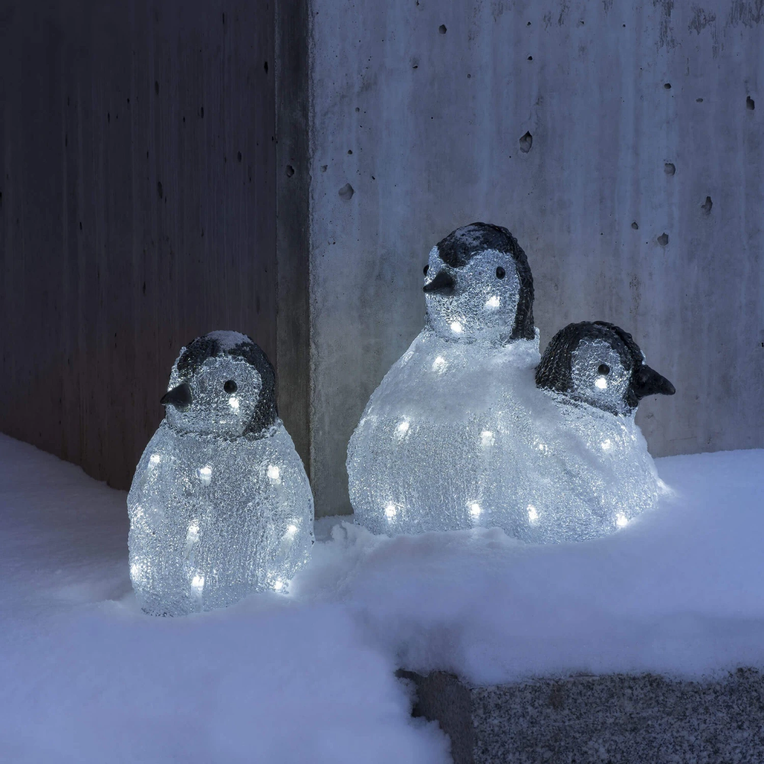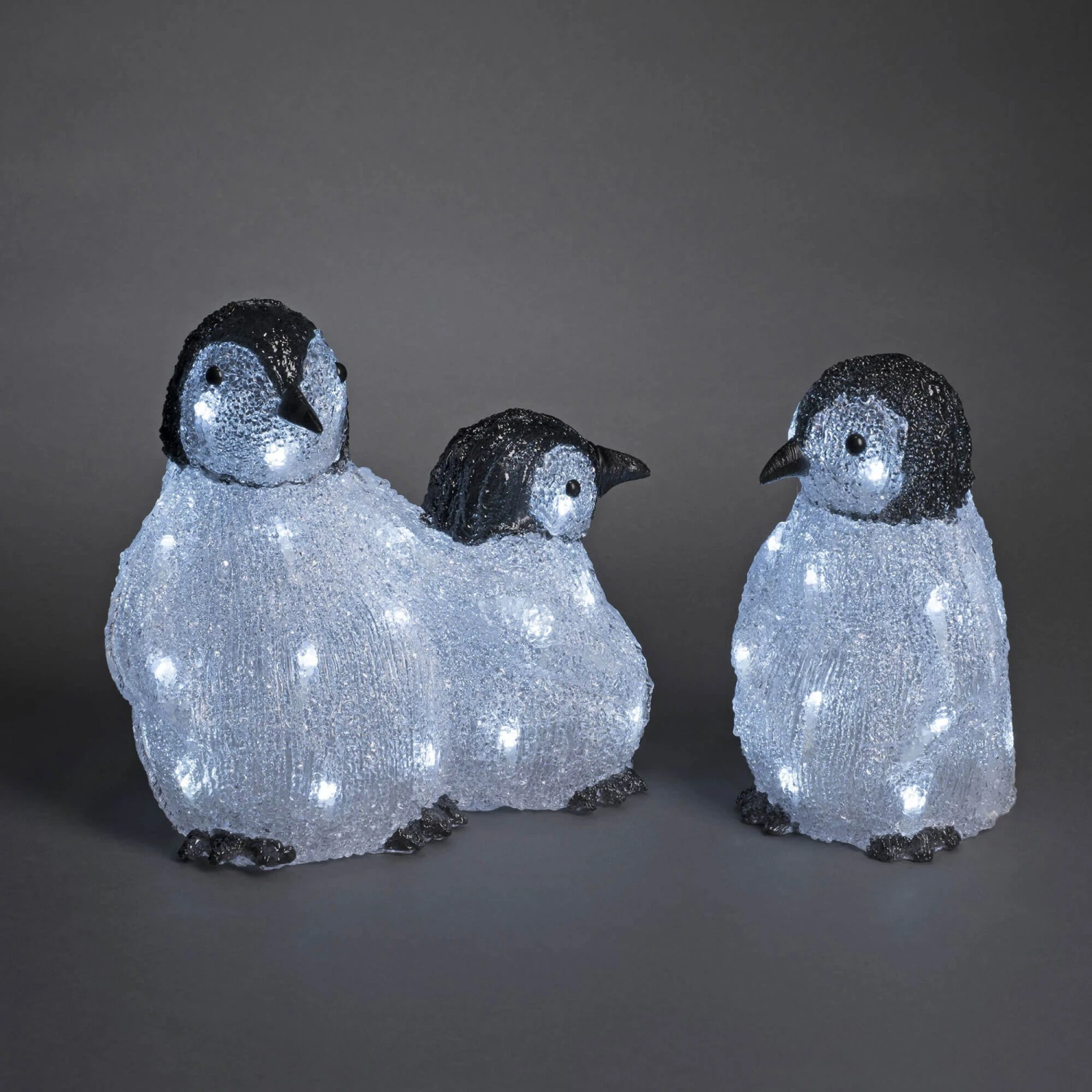 A set of 3 adorable acrylic Penguins that each light up in a wonderful cool white. These little penguins are suitable for outdoor use in rain, allowing you to create your own miniature wonderland no matter the weather. Two Penguins are joined together then one is separate but on the same wire.