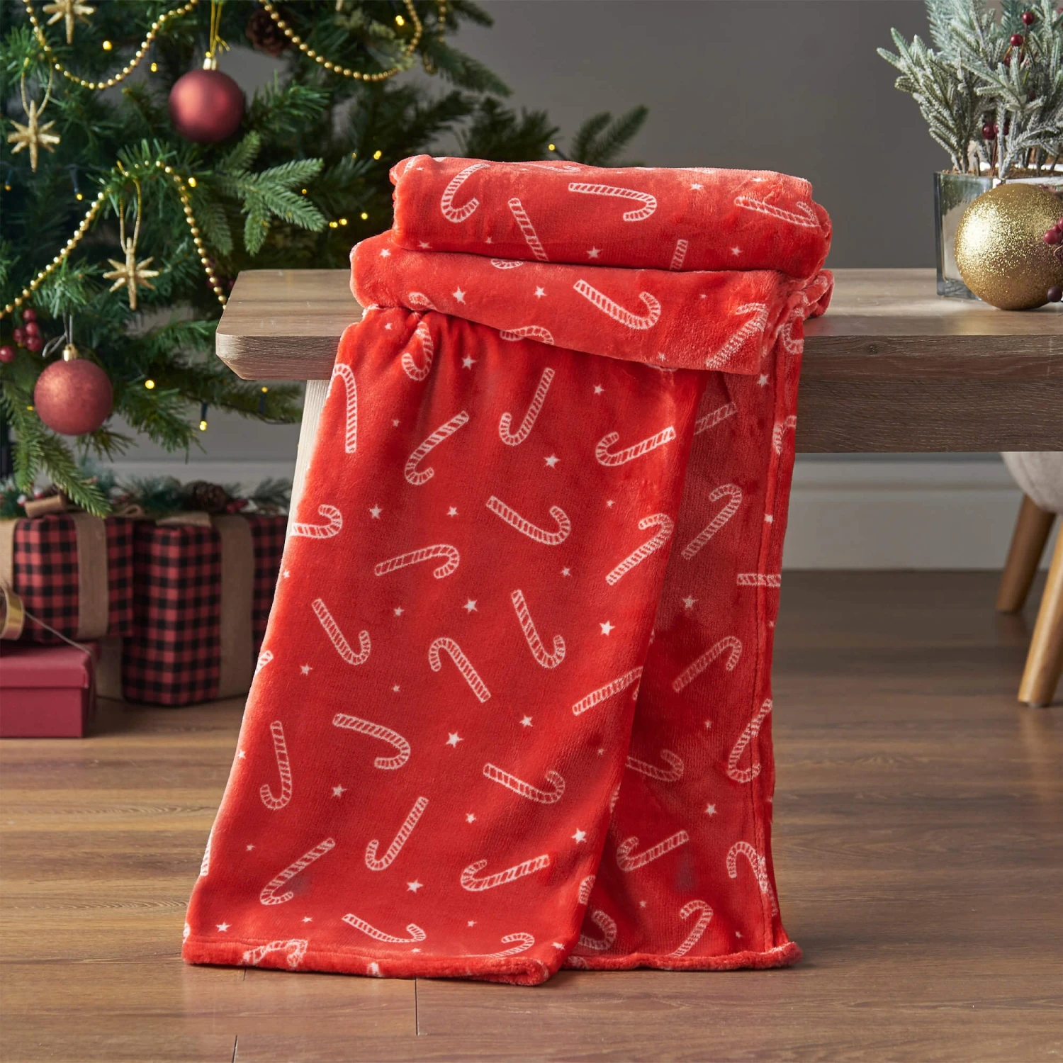 Catherine Lansfield Christmas Candy Cane Red Throw