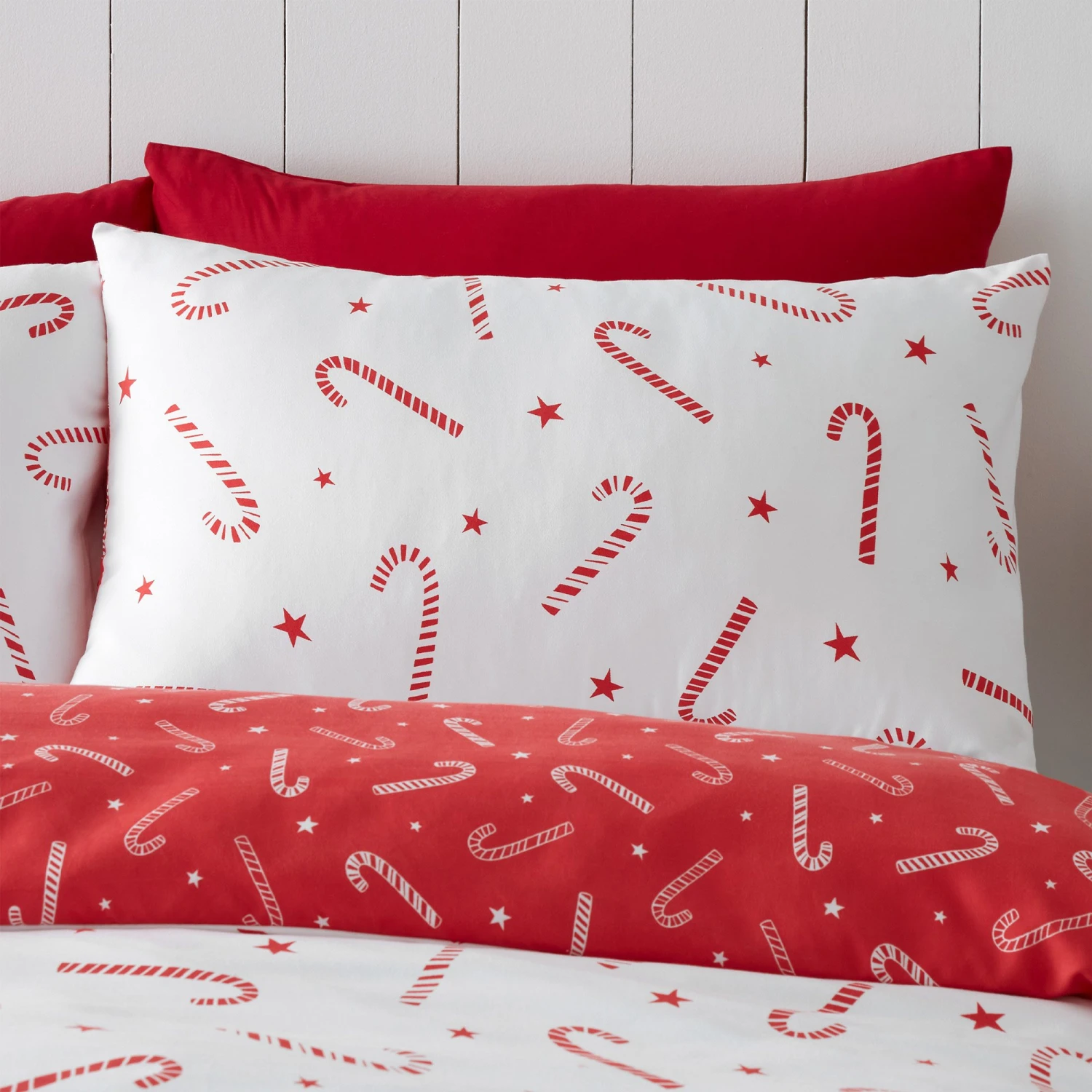 Catherine Lansfield Christmas Candy Cane White Single Duvet Set
