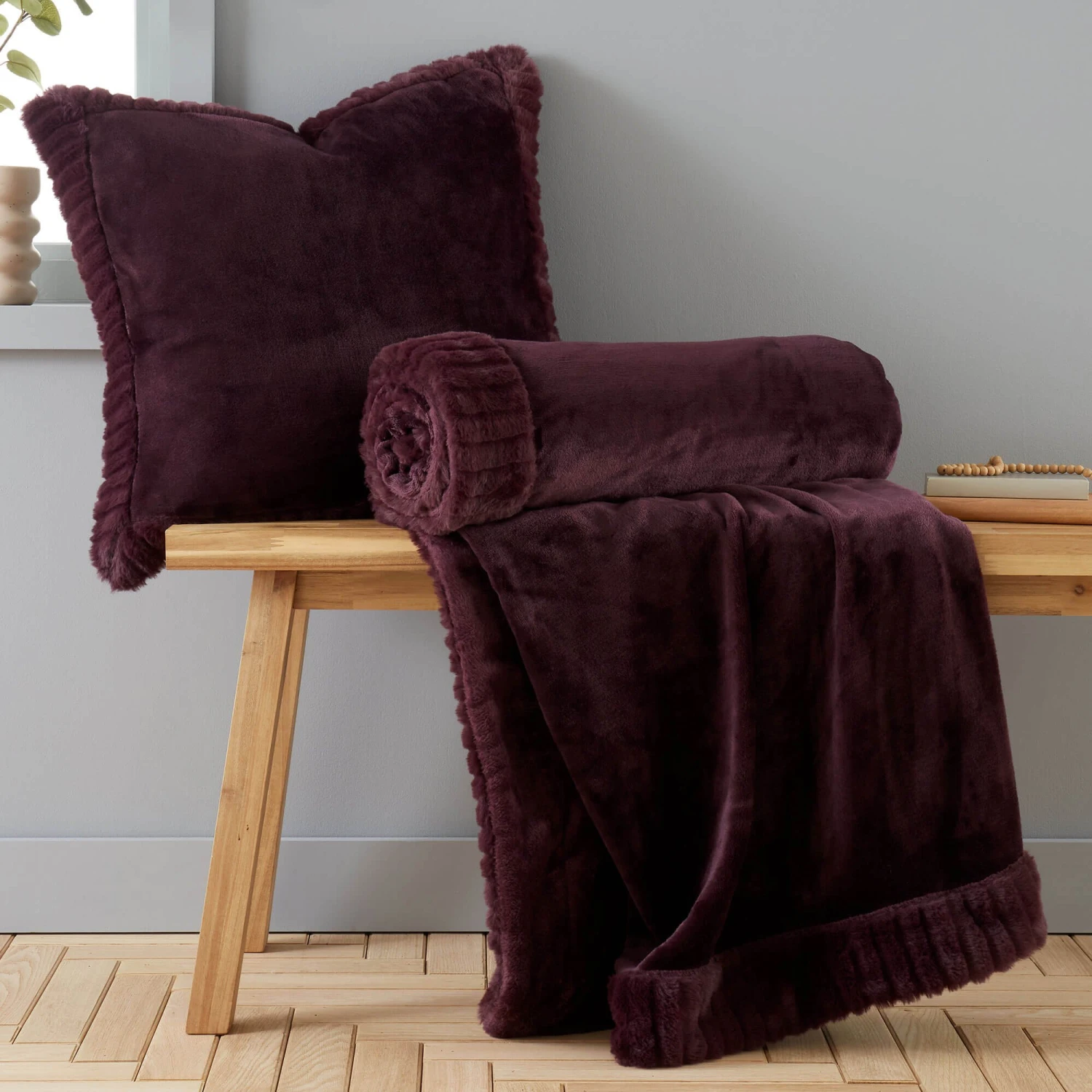Catherine Lansfield Plum Velvet Faux Fur Throw