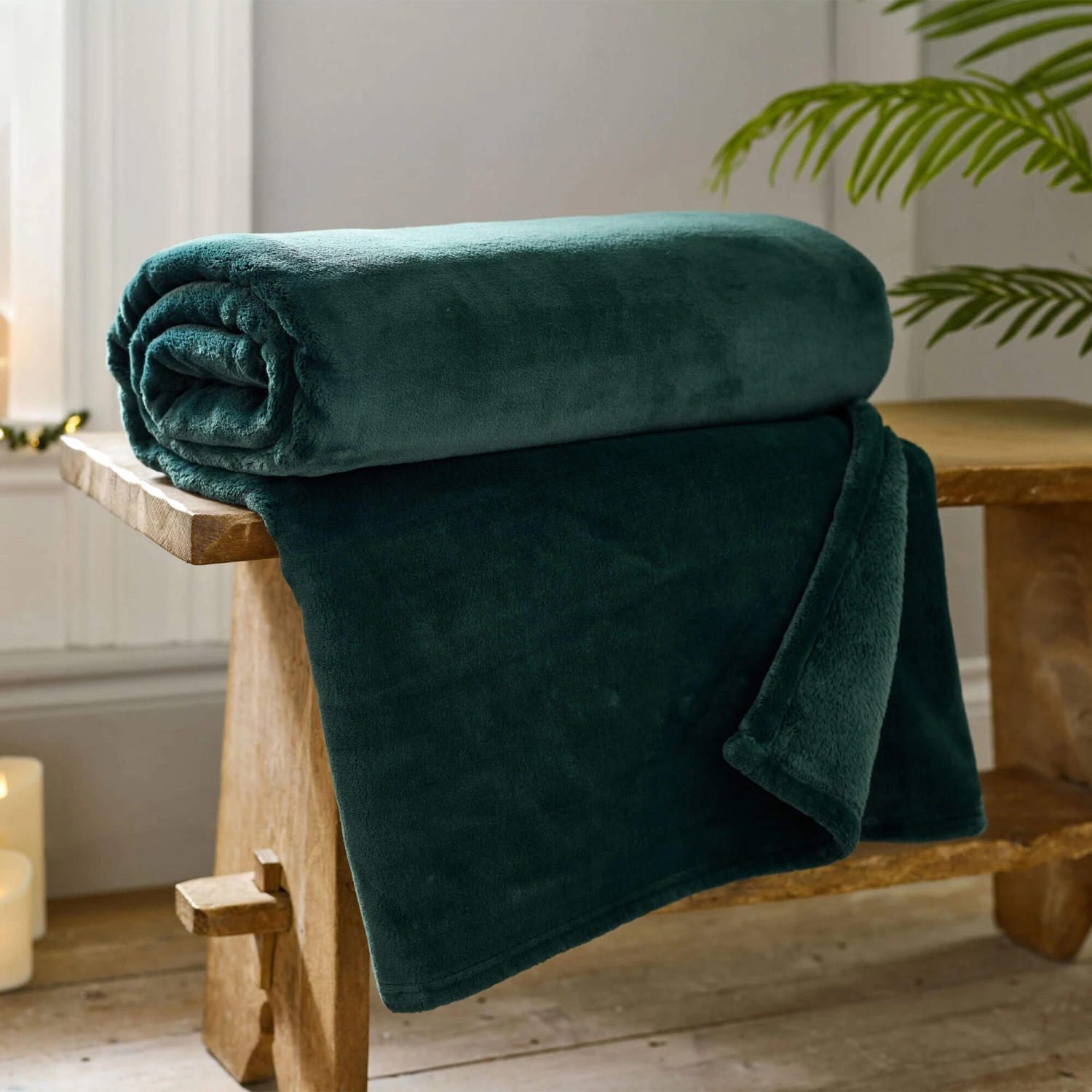 Coco Touch Pine Green Fleece Throw