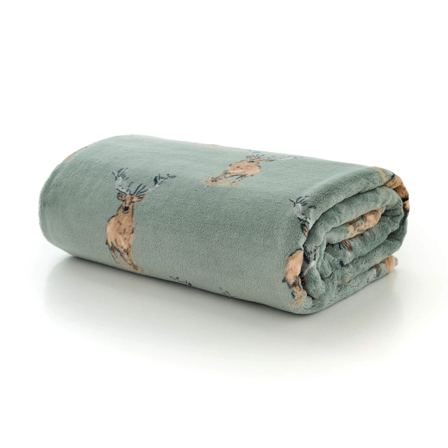 Highland Fell Stag Green Fleece Throw