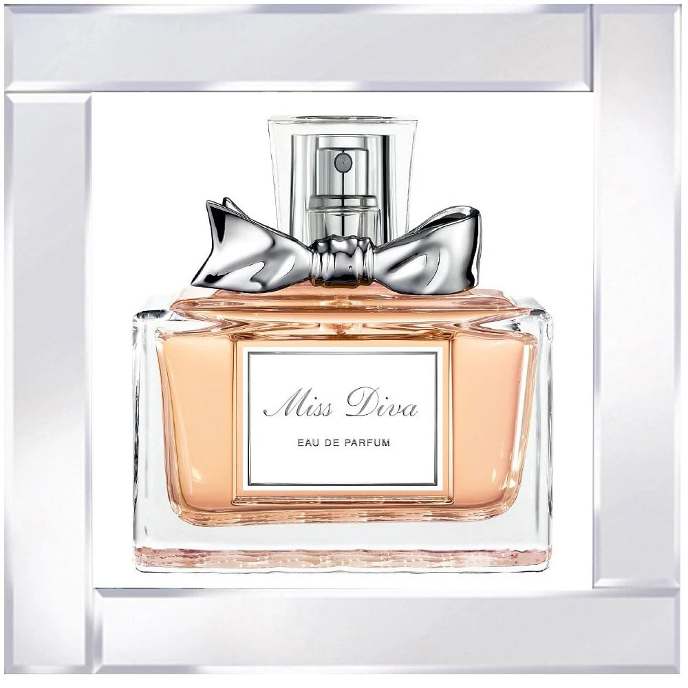 Perfect for bedrooms or dressing rooms, this designer inspired picture features a perfume called Miss Diva and has a soft pink colour and finished with a silver bow. This can bring a stylish feel to your home by accessorising plain walls to make them look glamorous