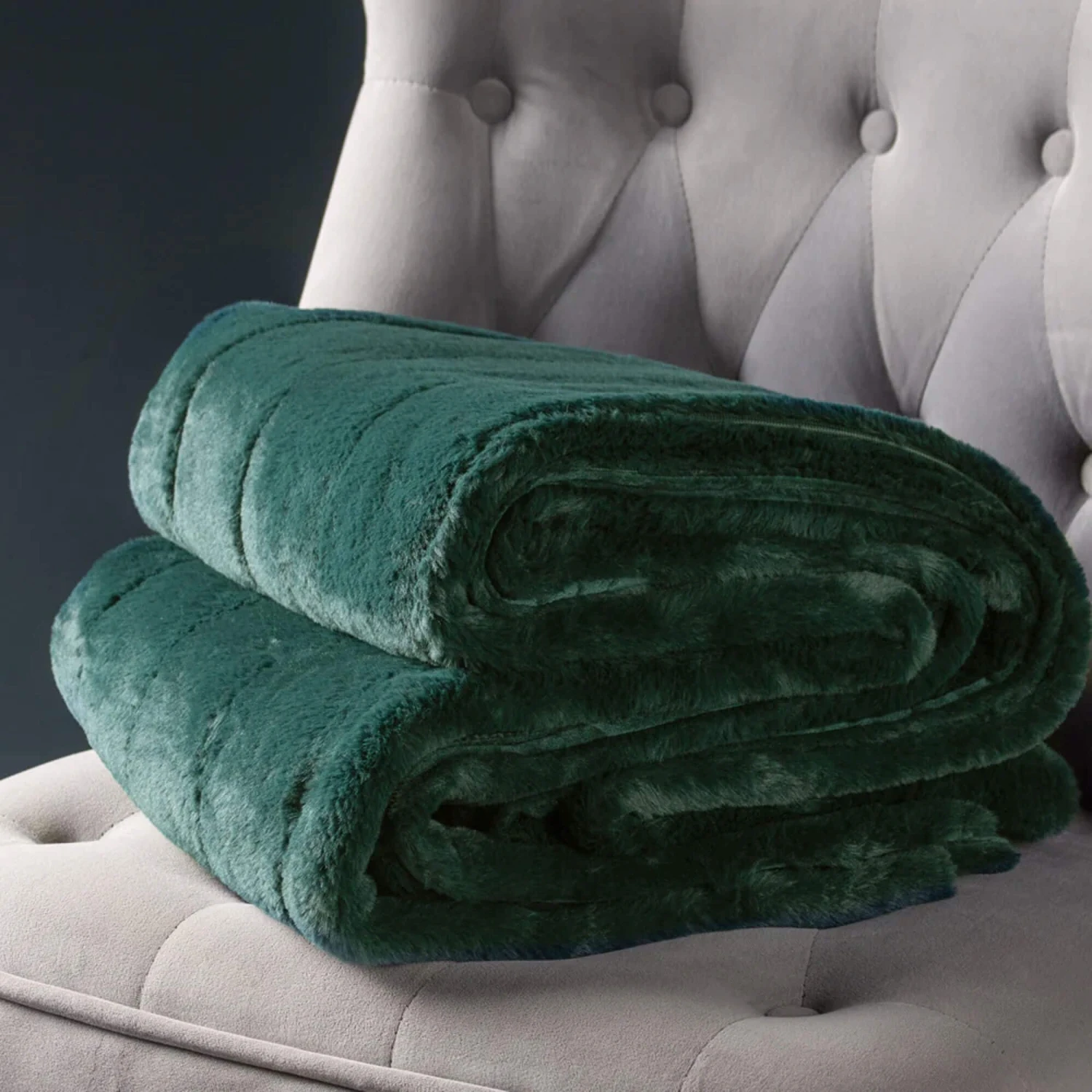Bring the great outdoors indoors and snuggle up in style with this Empress Emerald Faux Fur Throw from Riva Paoletti. Crafted from 100% polyester, this gorgeous throw is the perfect way to stay cosy and warm. Available in a variety of colours, this natural looking throw feels super soft and luxurious, making it the perfect addition to any living space.