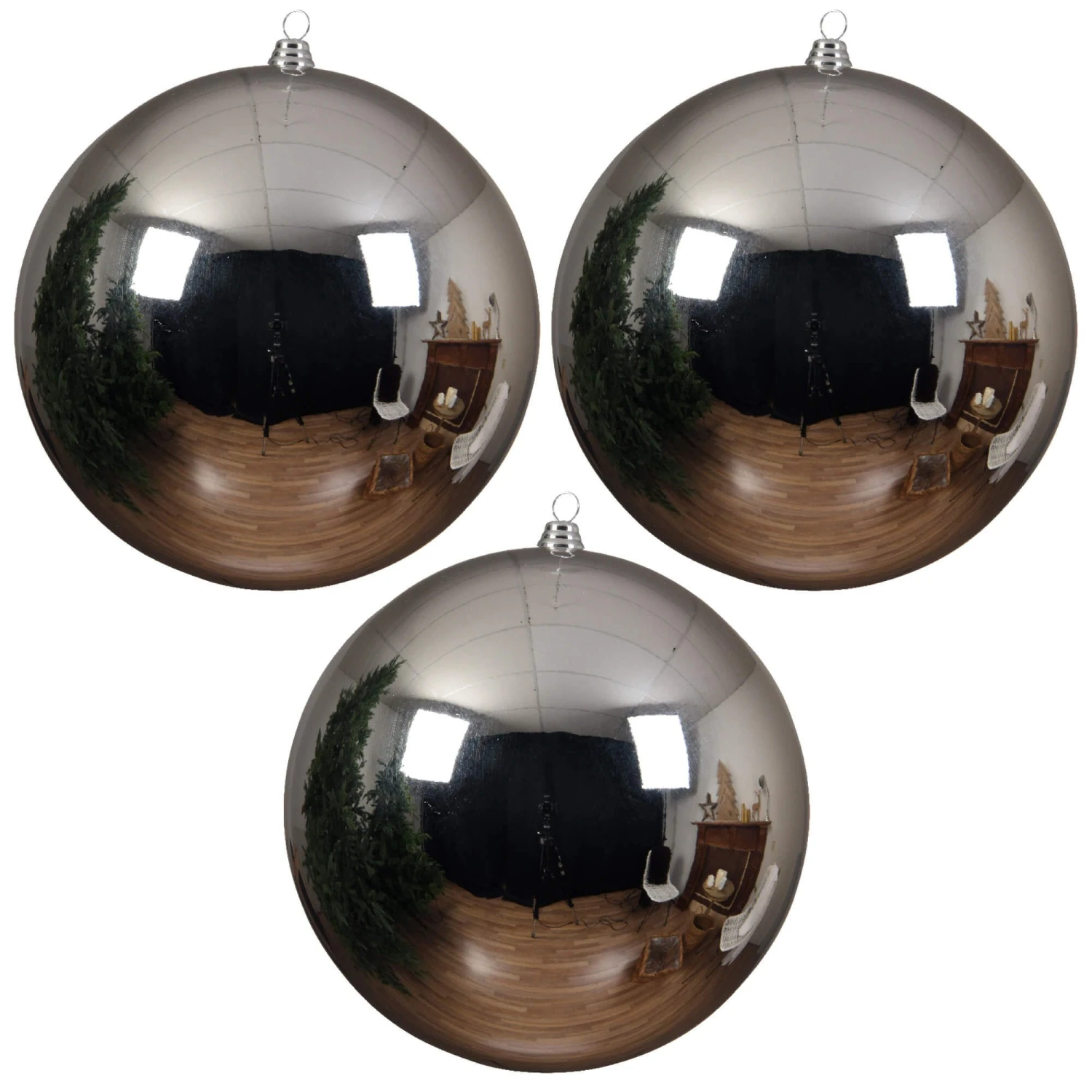 Add a touch of timeless elegance to your festive décor with this Set Of 3 Large 20cm Silver Shatterproof Baubles. Finished in a silver sheen that beautifully reflects the glow of Christmas lights, these oversized baubles make a striking statement on any tree or as part of a decorative display.